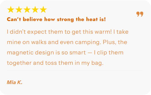 ❄️ We understand the struggle of numb fingers while waiting for buses and the inconvenience of bulky traditional warmers - that's why we created these magnetic heating companions that deliver instant warmth wherever you go.